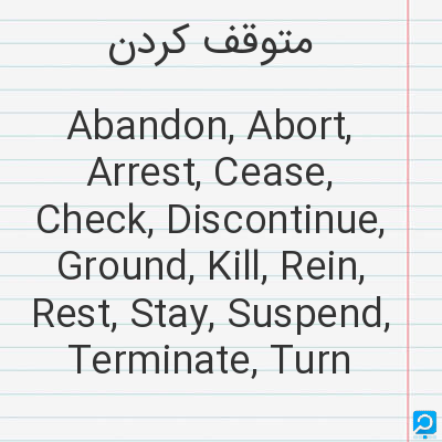 Abandon, Abort, Arrest, Cease, Check, Discontinue, Ground, Kill, Rein, Rest, Stay, Suspend, Terminate, Turn
