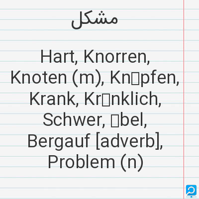 Hart, Knorren, Knoten (m), Knüpfen, Krank, Kränklich, Schwer, Übel, Bergauf [adverb], Problem (n)