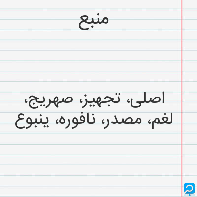 اصلی، تجهیز، صهریج، لغم، مصدر، نافوره، ینبوع