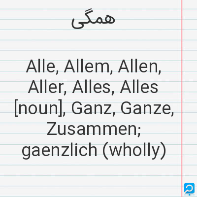 Alle, Allem, Allen, Aller, Alles, Alles [noun], Ganz, Ganze, Zusammen; gaenzlich (wholly)
