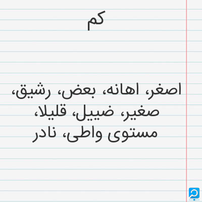 اصغر، اهانه، بعض، رشیق، صغیر، ضییل، قلیلا، مستوی واطی، نادر