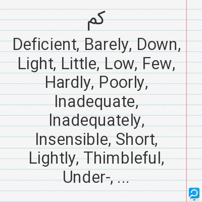 Deficient, Barely, Down, Light, Little, Low, Few, Hardly, Poorly, Inadequate, Inadequately, Insensible, Short, Lightly, Thimbleful, Under-, Meager, Mean, Measly, Mildly, Narrow, Nominal, Piddling, Poor, Rarely, Scant, Scanty, Scarce, Seldom, Shade, Sickly, Slight, Slim, Small, Spare, Spari