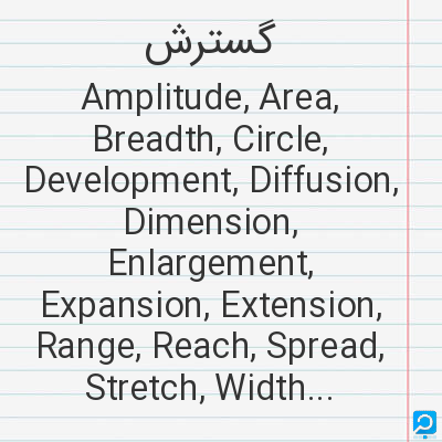 Amplitude, Area, Breadth, Circle, Development, Diffusion, Dimension, Enlargement, Expansion, Extension, Range, Reach, Spread, Stretch, Width