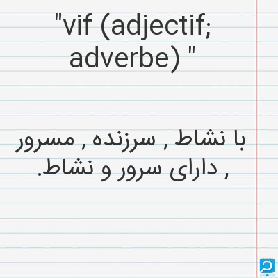"vif (adjectif; adverbe) " به فارسی دیکشنری فرانسوی