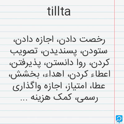 رخصت دادن، اجازه دادن، ستودن، پسندیدن، تصویب کردن، روا دانستن، پذیرفتن، اعطاء کردن، اهداء، بخشش، عطا، امتیاز، اجازه واگذاری رسمی، کمک هزینه تحصیلی، دادن، بخشیدن، اعطا کردن، تصدیق کردن، مسلم گرفتن، موافقت کردن، اجازه دادن، مجاز کردن، روا کردن، ندیده گرفتن، پروانه، جواز، اجازه،